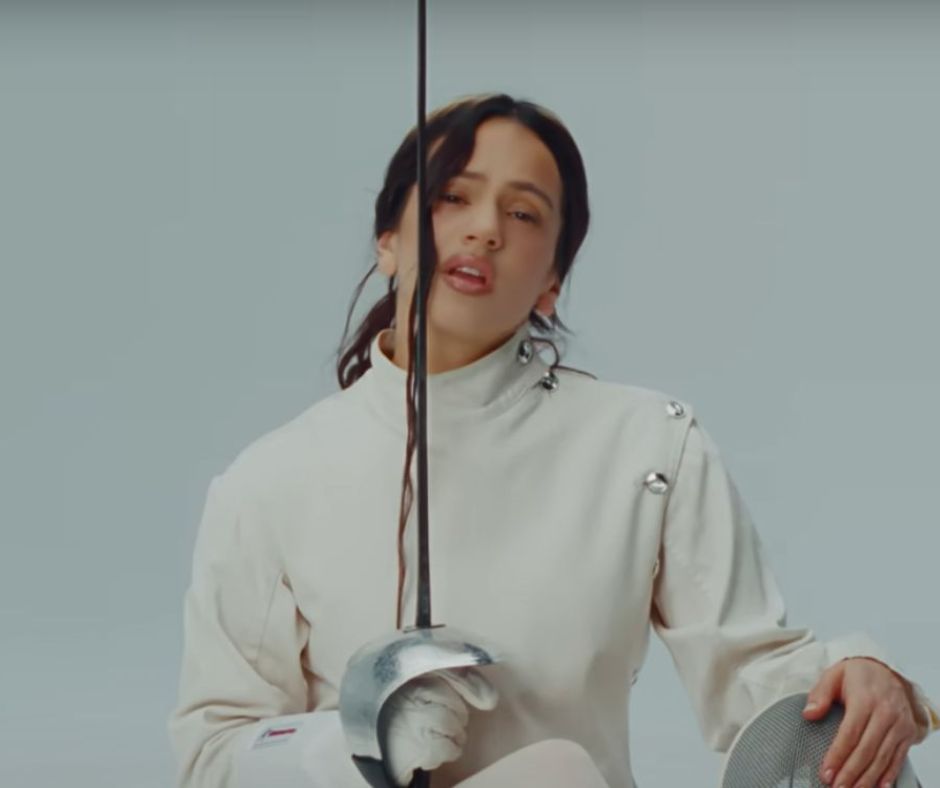 Un elemento clave es la estética de esgrima que Rosalía adopta: una metáfora clara de defensa emocional. La esgrima requiere precisión, distancia y estrategia, cualidades que se aprenden tras pasar por relaciones dañinas.